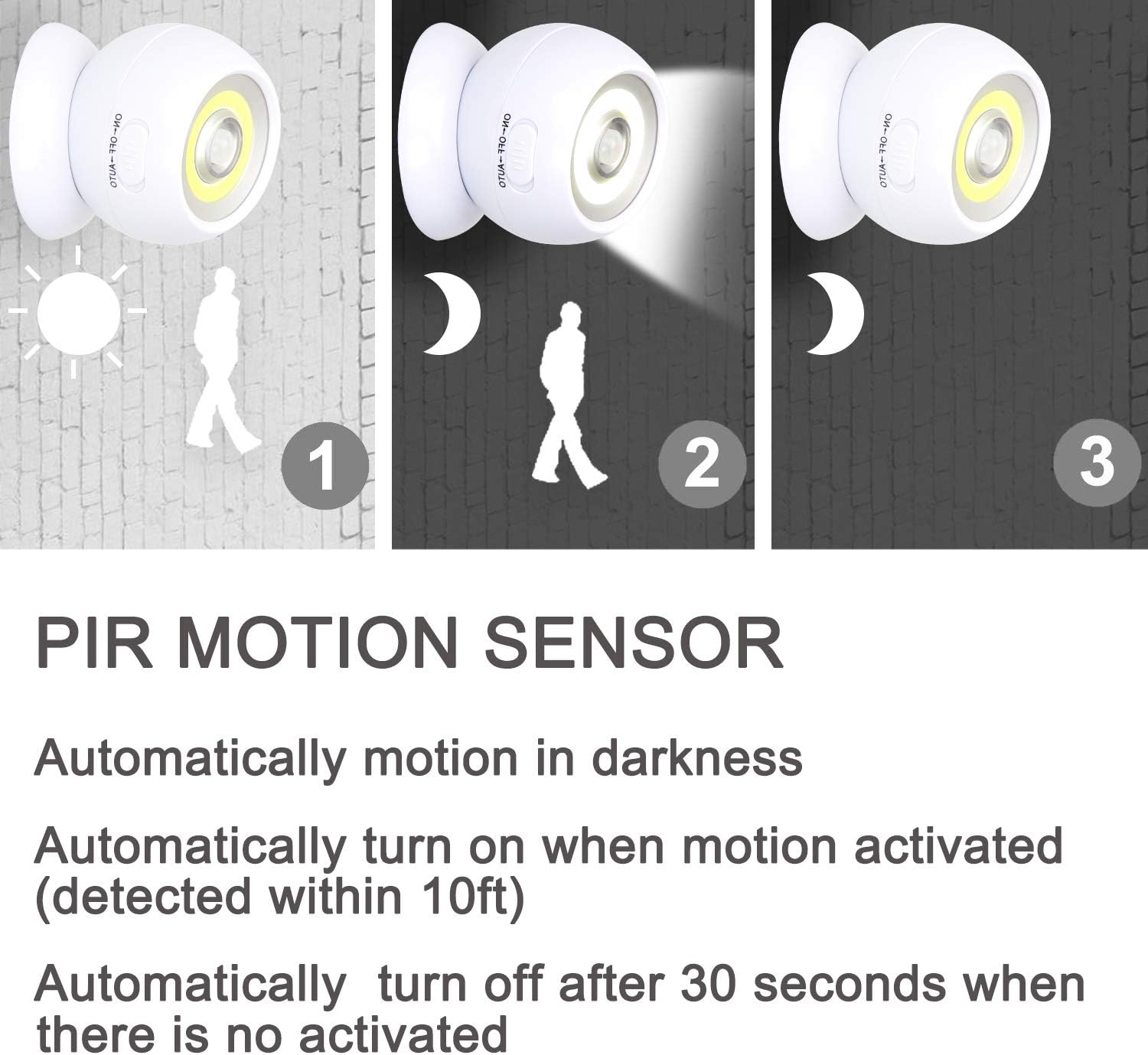 - AUTO Mode: Set it and forget it! 🤖 Automatically turns ON when it detects motion within 10 feet and senses darkness. No more startling trips in the dark!