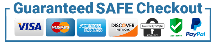 The Checkout Process is Guaranteed to be 100% Safe and Secure with Visa, Mastercard, AMex, Discover, Apple Pay or PayPal.