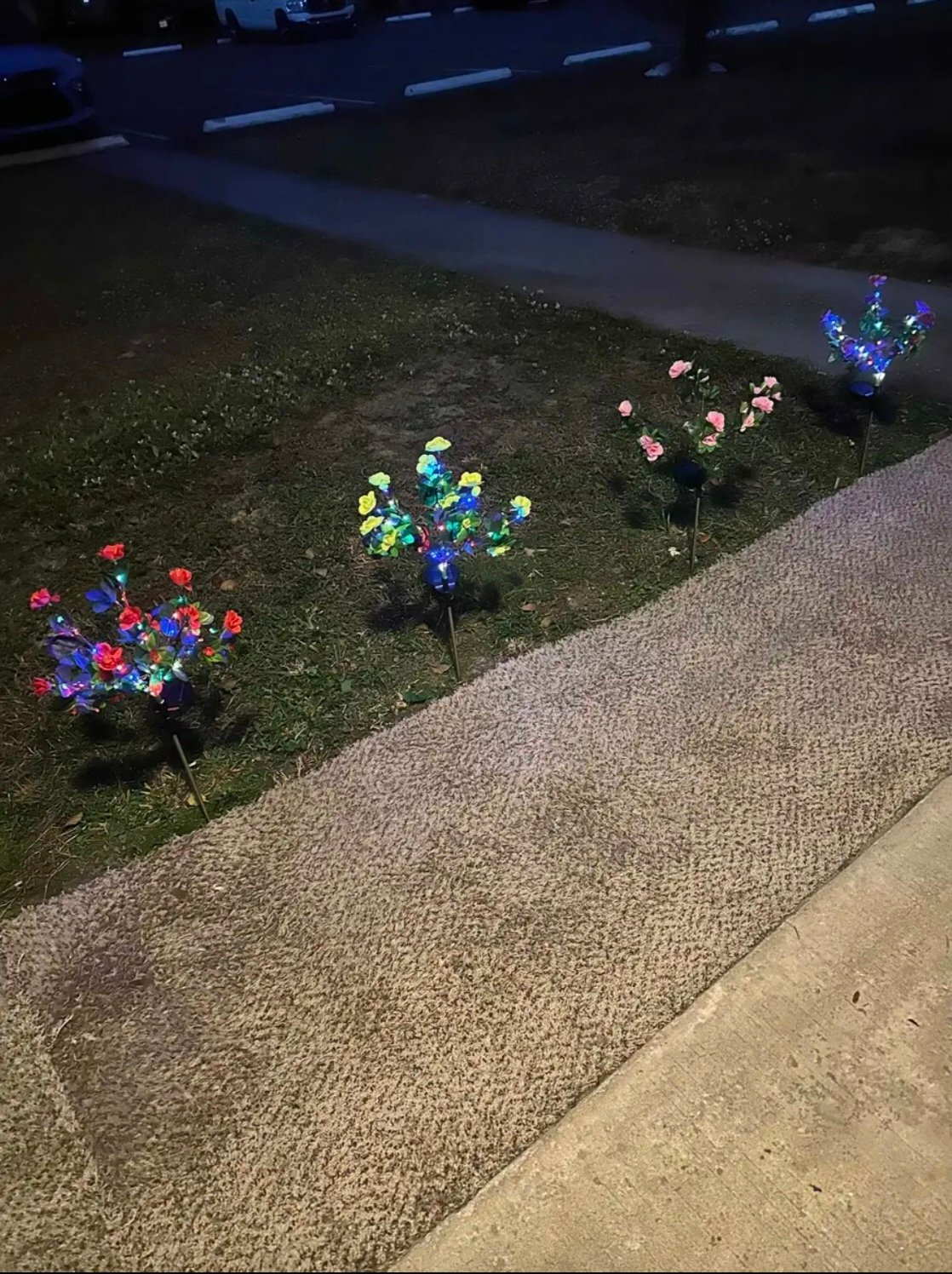 Designed with lifelike blooming flowers and gentle multi color light, each stake adds warmth and beauty as evening falls. During the day, the built in solar panel quietly collects sunlight. At night, the flowers softly illuminate the space without wires, electricity, or effort.
